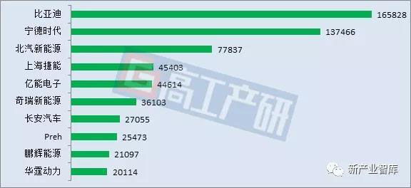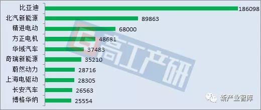 2019年1-9月新能源汽車電機(jī)裝機(jī)量TOP10企業(yè)(套)