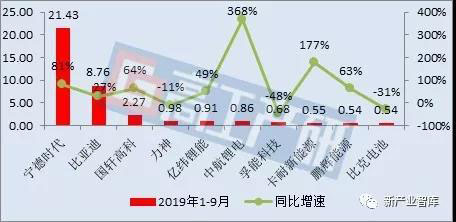 2019年1-9月新能源汽車動(dòng)力電池裝機(jī)量TOP10企業(yè)(GWh)
