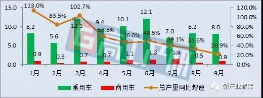 1-9月我國新能源汽車產(chǎn)量分析(輛)