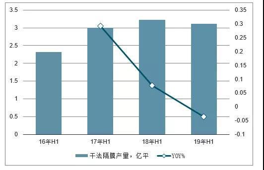 16H1-19H1干法隔膜產(chǎn)量及增長