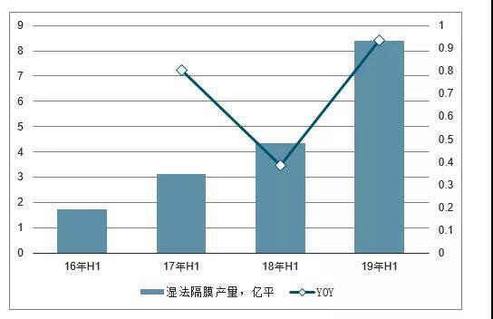 16H1-19H1濕法隔膜產(chǎn)量及增長