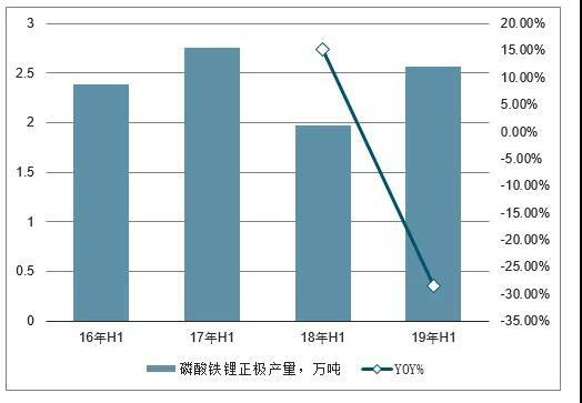16H1-19H1磷酸鐵鋰正極產(chǎn)量及增長