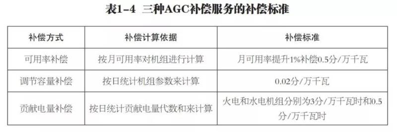 AGC服務補償?shù)娜N補償方式為可用率補償、調(diào)節(jié)容量補償和貢獻電量補償。