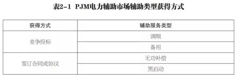 PJM定義的不同輔助服務類型的獲取方式如表所示: