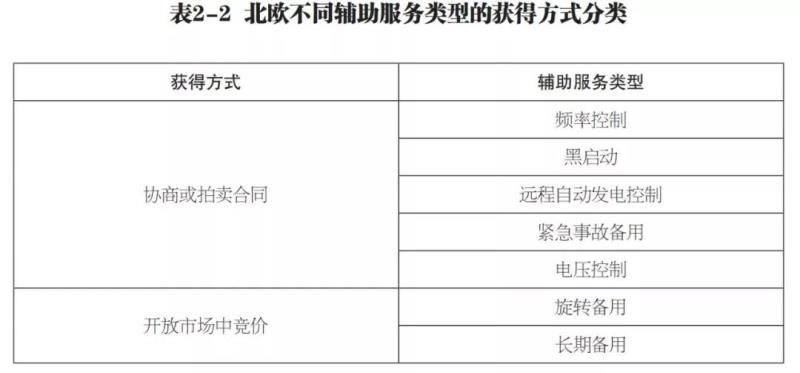 北歐政府在調(diào)查并分析各國電力系統(tǒng)平衡輔助服務的市場數(shù)據(jù)基礎上,聯(lián)合設計出一種統(tǒng)一的平衡機制,以達到電力系統(tǒng)的平衡和穩(wěn)定效果。北歐輔助服務類型的獲得方式如表所示:
