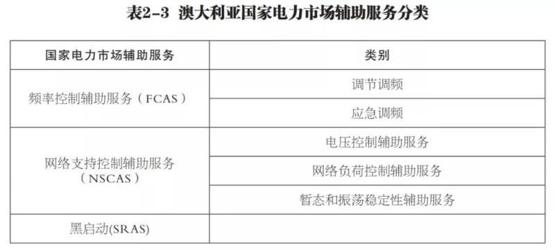 國家電力市場輔助服務的三種輔助服務類型分類如下表所示: