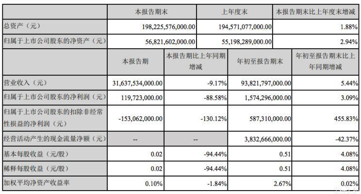 『比亞迪第三季度報告部分信息』