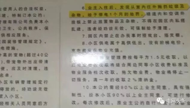 很多人覺得,物業(yè)對高空拋物的某戶居民停電一個月這個事,是小區(qū)“公約”規(guī)定的,這個“公約”是大家簽過字的,因此沒有問題。