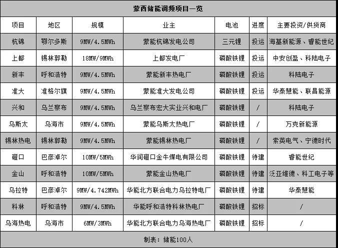 “儲能100人”據(jù)市場信息統(tǒng)計,目前蒙西AGC儲能項目已達十余個,其中,杭錦、上都、新豐和準大項目處于投運階段。