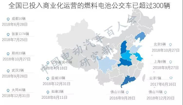 近年來(lái),在國(guó)家和地方政策的推動(dòng)下,各地紛紛開(kāi)展燃料電池公交、物流車等領(lǐng)域的示范項(xiàng)目,燃料電池汽車得到廣泛推廣和應(yīng)用。據(jù)公開(kāi)新聞報(bào)道,2018年共有13座城市展開(kāi)燃料電池汽車示范應(yīng)用,涉及公交運(yùn)營(yíng)車輛達(dá)到300余輛。