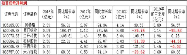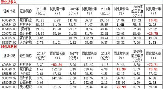 據(jù)《科創(chuàng)板日報(bào)》記者統(tǒng)計(jì),廈門鎢業(yè)(600549.SH)在2018年同樣出現(xiàn)了凈利下滑,2019年更甚;杉杉股份2019年前三季度凈利潤下滑嚴(yán)重,降幅達(dá)72.71%。當(dāng)升科技和容百科技今年1-9月的的利潤增幅也明顯縮小,僅為6.98%和2.58%。