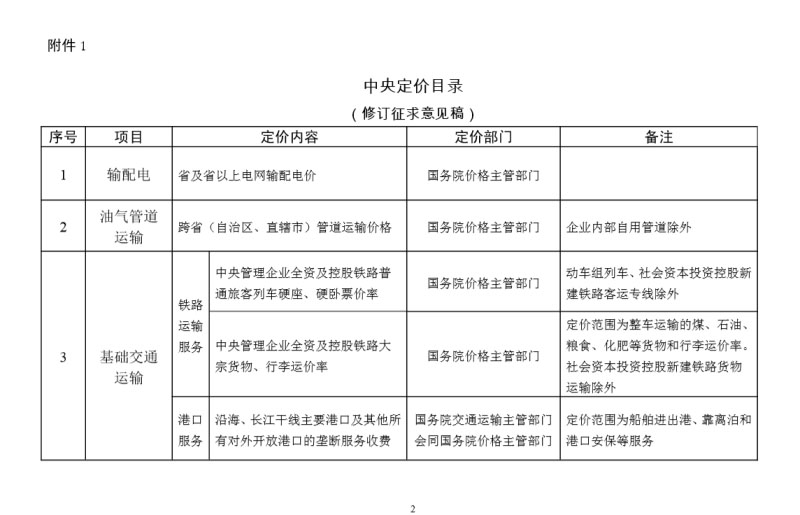 附件:1.《中央定價(jià)目錄》(修訂征求意見(jiàn)稿)