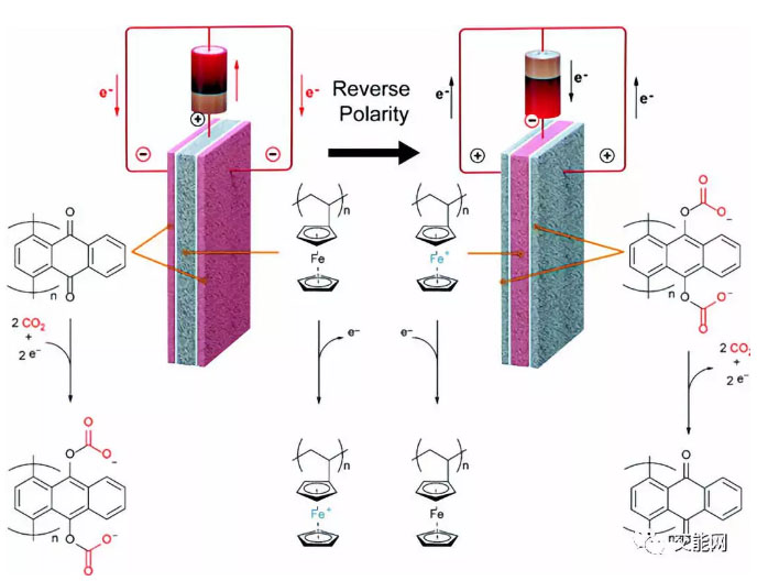 這項技術(shù)的特點和難點在于電極材料的選擇和制作。首先,需要能選擇性捕獲二氧化碳;其次,電極表面需要較大的表面積,增加反應(yīng)速率,這對于從低濃度的二氧化碳源中捕獲二氧化碳尤為重要;最后,還需要良好的導(dǎo)電性,這一點通過聚蒽醌中的離域π鍵得以實現(xiàn)。