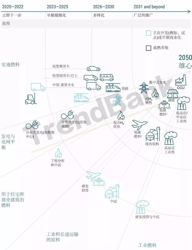 根據(jù)報告,美國計劃2020年到2022年,實現(xiàn)氫能在小型乘用車、叉車、分布式電源、家用熱電聯(lián)產(chǎn)、碳捕捉等領(lǐng)域應用。