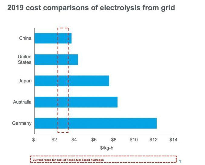 伍德麥肯茲(Wood Mackenzie)最近的一份分析報告預(yù)測,主要由太陽能電解生產(chǎn)的綠色氫,到2030年將在澳大利亞、德國和日本達到成本平價(cost parity)。