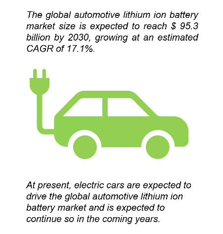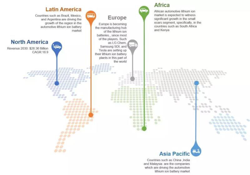 不斷增長的電動(dòng)汽車需求,是推動(dòng)全球汽車鋰離子電池市場發(fā)展的主要因素。此外,為了減少碳足跡,地方政府進(jìn)一步推動(dòng)電動(dòng)汽車(綠色汽車)的普及性,從而推動(dòng)了汽車鋰離子市場的增長。然而,由于汽車鋰離子電池制造商數(shù)量有限以及充電站數(shù)量有限等因素導(dǎo)致的高成本等因素限制了市場的增長。