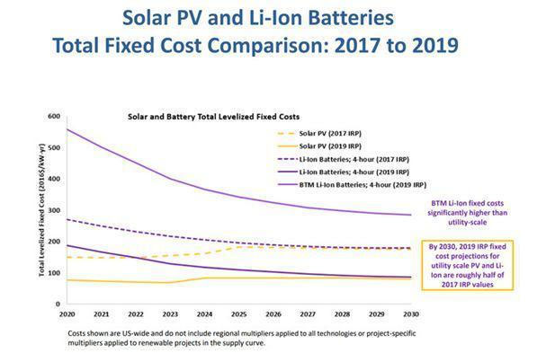 研究表示,2019年電網(wǎng)規(guī)模的太陽能+儲能成本約為2017年綜合資源計(jì)劃(IRP)的一半。