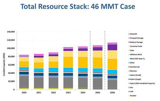 根據(jù)2018年綜合資源計(jì)劃(IRP)模型,到2030年,加利福尼亞州將部署5.9GW的太陽能發(fā)電廠和2.1吉瓦的電池儲能系統(tǒng),年投資成本為445億美元。