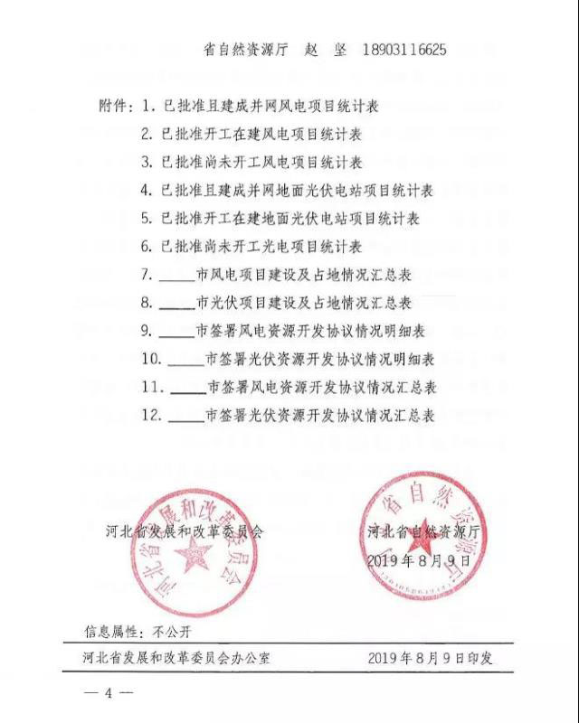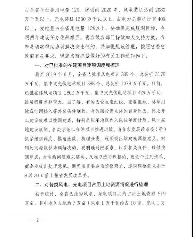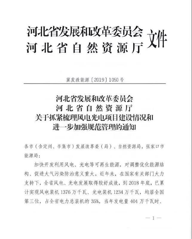 1、請(qǐng)對(duì)8月上旬印發(fā)《關(guān)于抓緊梳理風(fēng)電光電項(xiàng)目建設(shè)情況和進(jìn)一步加強(qiáng)規(guī)范管理的通知》(冀發(fā)改能源(2019)1050號(hào))后,各市已上報(bào)的各類風(fēng)電光電項(xiàng)目開發(fā)協(xié)議抓緊補(bǔ)充、完善,未上報(bào)的補(bǔ)充上報(bào)。