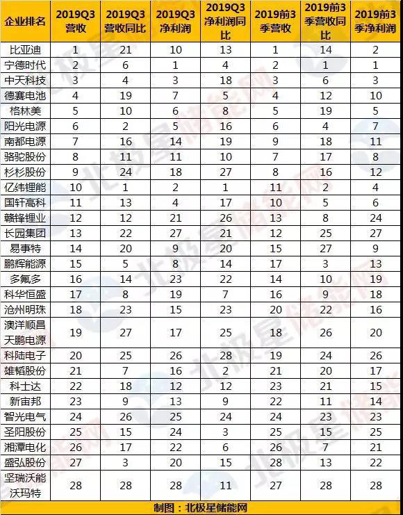 寧德時(shí)代和中天科技各項(xiàng)排名表現(xiàn)雖比較均衡,都在前十名之列。但是寧德時(shí)代第三季度的營(yíng)收增勢(shì)已不如其半年報(bào)中表現(xiàn)亮眼。類(lèi)似的德賽電池也未能保持半年報(bào)的營(yíng)收優(yōu)勢(shì)。