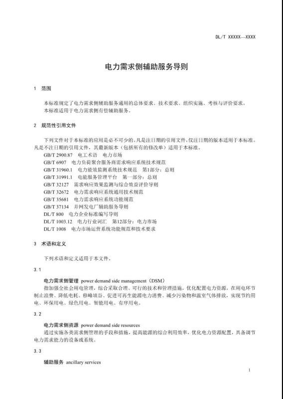 本標準規(guī)定了電力需求側(cè)輔助服務(wù)通用的總體要求、技術(shù)要求、組織實施、考核與評價要求;適用于電力需求側(cè)有償輔助服務(wù)。