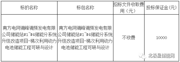 南方電網(wǎng)調(diào)峰調(diào)頻發(fā)電有限公司就南方電網(wǎng)調(diào)峰調(diào)頻發(fā)電有限公司儲能站#1~#4儲能分系統(tǒng)升級改造項目——梯次利用動力電池儲能工程可研與設(shè)計項目向國內(nèi)公開招標(biāo),凡有意參加投標(biāo)的單位均可購買招標(biāo)文件。