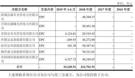 答案或許是有,因為恰如晶科電力披露,2018 年,經過招投標,公司中標了上述領跑者項目公司的EPC 業(yè)務,實現(xiàn)EPC項目收入共計313701.51 萬元;2019 年1-6 月,實現(xiàn)EPC 項目收入共計10340.51 萬元。只有將子公司變?yōu)榉呛喜⒎秶鷥鹊目蛻?,本應確認為在建工程的項目,則可以立即變成收入利潤,大大提前了收益確認時點,并能更早通過工程款收回前期投資也是好處之一。