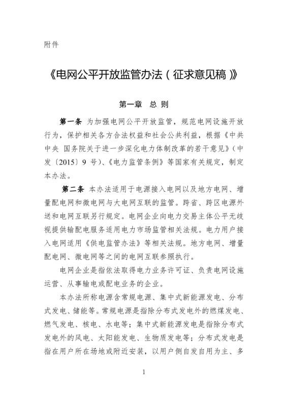 附件:電網(wǎng)公平開放監(jiān)管辦法(征求意見稿)