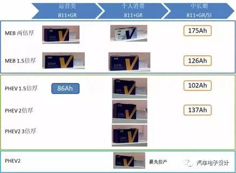 尺寸:目前看到蜂巢在做傳統(tǒng)的355、590的模組都要做,往PHEV的標(biāo)準(zhǔn)模組、BEV的355模組和未來(lái)590的模組要求 這兩點(diǎn)在目前的產(chǎn)品體系里面是比較清楚的,如下所示,整體的規(guī)劃都是按照NCM811來(lái)做,其實(shí)對(duì)于一個(gè)新的電池企業(yè)往相對(duì)成熟的產(chǎn)品系列是沒有意義的,一個(gè)是沒有價(jià)格優(yōu)勢(shì),另外一個(gè)是積累的經(jīng)驗(yàn)過(guò)一個(gè)產(chǎn)品周期可能就沒用了。