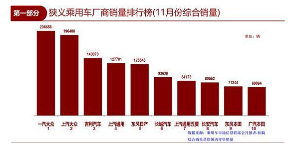 值得注意的是,自主頭部企業(yè)的表現(xiàn)令人驚喜。其中,吉利11月銷量達(dá)到140070輛,從狹義乘用車角度統(tǒng)計(jì),已超越上汽通用12369輛,高居銷量季軍?!半S著年末的到來,吉利預(yù)計(jì)還會在春節(jié)前迎來一波‘爆發(fā)式’增長。歷年春節(jié)前都是入門級車型的消費(fèi)高峰,而消費(fèi)者也更青睞領(lǐng)頭品牌的產(chǎn)品。”崔東樹分析道。