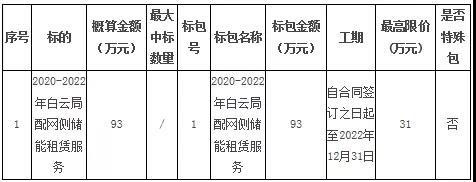 2020-2022年白云局配網(wǎng)側(cè)儲(chǔ)能租賃服務(wù)