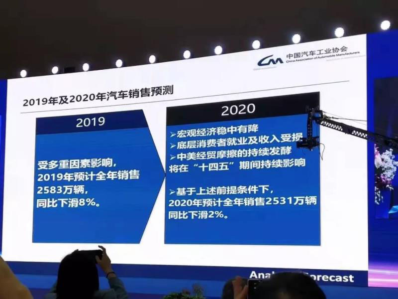 這種低迷態(tài)勢是否會延續(xù)到2020年?在日前舉行的2020中國汽車市場預(yù)測峰會上,中國汽車工業(yè)協(xié)會(簡稱“中汽協(xié)”)方面表示,2020年預(yù)計銷量為2531萬輛,降幅將所有收窄,在-2%左右,而正增長拐點或出現(xiàn)在2023年。