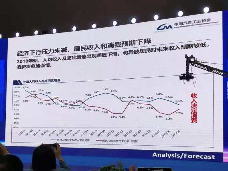 最直接的體現(xiàn)就是購買力降低、消費信心不足。這也是中汽協(xié)在調(diào)研中,收到的車企反映的普遍問題。數(shù)據(jù)顯示,從2018年開始,居民收入和支出增速明顯降低,汽車消費低迷拉低了社會整體消費水平。10月,社會消費品零售總額同比增長7.2%(扣除價格因素實際增長4.9%),其中,汽車消費同比下降3.3%。