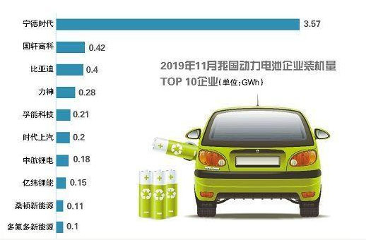 據(jù)了解,今年前11個月我國動力電池企業(yè)裝機量前十名為寧德時代、比亞迪、國軒高科、力神電池、中航鋰電、時代上汽、億緯鋰能、孚能科技、鵬輝能源、卡耐新能源。