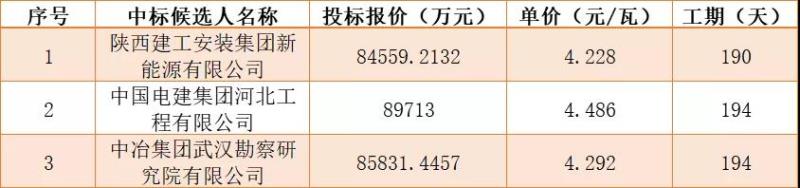 12月16日,海南州特高壓外送基地電源配置項(xiàng)目塔拉灘七標(biāo)段100MW光伏、八標(biāo)段100MW光伏項(xiàng)目公示EPC總承包工程中標(biāo)候選人,陜西建工安裝集團(tuán)新能源有限公司以總價(jià)84559.2132萬元、單價(jià)4.228元/瓦位列第一中標(biāo)候選人,具體如下。