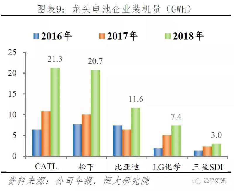 從企業(yè)層面來(lái)看,龍頭企業(yè)優(yōu)勢(shì)突出,市占率不斷提高。裝機(jī)量TOP5的企業(yè)市占率不斷提升,由2016年的56.7%上升到2018年65.9%。其中,寧德時(shí)代、松下與LG化學(xué)市場(chǎng)份額占比最高、提升最快,總裝機(jī)量增幅最大。2018年寧德時(shí)代裝機(jī)量21.3GWh,市占率22%;松下裝機(jī)量20.7GWh,市占率21.4%;LG化學(xué)裝機(jī)量7.4GWh,市占率7.6%。前三大企業(yè)在技術(shù)、工藝等領(lǐng)域各具競(jìng)爭(zhēng)優(yōu)勢(shì)。松下是全球最先實(shí)現(xiàn)NCA18650+硅碳負(fù)極圓柱電池量產(chǎn)的企業(yè),在電化學(xué)體系、生產(chǎn)良率與一致性方面居于領(lǐng)先地位;寧德時(shí)代率先實(shí)現(xiàn)了NCM811方形電芯的量產(chǎn),并成功運(yùn)用于廣汽與寶馬,技術(shù)路線(xiàn)上成功實(shí)現(xiàn)由NCM523向NCM811的過(guò)渡;LG化學(xué)的優(yōu)勢(shì)在于其對(duì)化學(xué)材料的理解,技術(shù)路線(xiàn)為軟包電池,是國(guó)際上最先掌握層壓疊片式軟包的企業(yè),而在NCM811的應(yīng)用上,則落后于寧德時(shí)代。