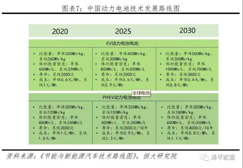 2)2025年應(yīng)滿(mǎn)足400km以上純電動(dòng)汽車(chē)需求:?jiǎn)误w能量密度達(dá)400Wh/kg和800Wh/L、單體比功率達(dá)1000W/kg、單體成本降至0.5元/Wh、循環(huán)壽命2000次。