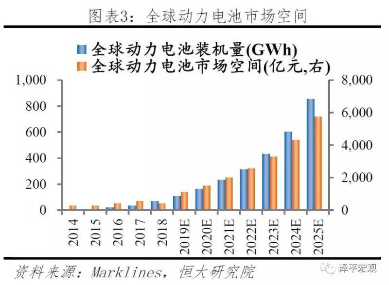 歐洲紛紛制定燃油車(chē)禁售計(jì)劃,全球新能源汽車(chē)與動(dòng)力電池產(chǎn)業(yè)將進(jìn)入成長(zhǎng)期。2018年全球新能源汽車(chē)銷(xiāo)量占全部汽車(chē)銷(xiāo)量比例僅為2.3%,其中中國(guó)占比4.4%。根據(jù)各國(guó)政策規(guī)劃,中國(guó)要求2025年新能源汽車(chē)占汽車(chē)產(chǎn)銷(xiāo)達(dá)到25%,歐洲各國(guó)則制定了燃油車(chē)禁售時(shí)間表,例如挪威要求到2025年實(shí)現(xiàn)燃油車(chē)禁售,丹麥、荷蘭、愛(ài)爾蘭要求到2030年實(shí)現(xiàn)燃油車(chē)禁售,法國(guó)、西班牙、英國(guó)、葡萄牙要求到2040年實(shí)現(xiàn)燃油車(chē)禁售。英國(guó)還要求到2030年新能源乘用車(chē)銷(xiāo)量占比50%-70%。歐盟2019年4月通過(guò)新的碳排放規(guī)定:到2025、2030年,新登記乘用車(chē)碳排放量在2021年基礎(chǔ)上分別減少15%、37.5%;但是,據(jù)歐洲環(huán)保署數(shù)據(jù),節(jié)能技術(shù)改進(jìn)僅能實(shí)現(xiàn)年均1.5%-2%左右的碳排放降幅。不達(dá)標(biāo)將面臨高額罰款,發(fā)展新能源汽車(chē)將是歐洲車(chē)企唯一選擇。大眾、寶馬、沃爾沃提出,到2025年新能源汽車(chē)銷(xiāo)量占比25%、30%、50%;本田提出,到2030年新能源汽車(chē)銷(xiāo)量占比65%。根據(jù)Marklines預(yù)測(cè),未來(lái)5年全球動(dòng)力電池行業(yè)將持續(xù)高速增長(zhǎng),2025年全球裝機(jī)量可達(dá)850GWh、市場(chǎng)空間可達(dá)5800億元。