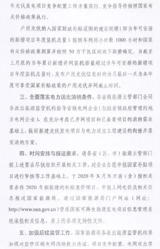 但需要注意的是,本次征求意見稿中暫未明確2020年度補貼總額、戶用補貼額度分配以及競價指導價和戶用補貼強度。