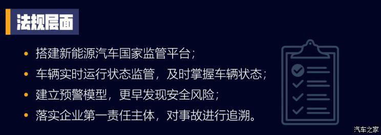 相關(guān)部門逐步搭建了新能源汽車國家監(jiān)管平臺體系架構(gòu),一方面通過新能源汽車企業(yè)平臺運(yùn)行監(jiān)管和車輛實(shí)時(shí)運(yùn)行狀態(tài)監(jiān)管,及時(shí)準(zhǔn)確掌握車輛技術(shù)狀態(tài);另一方面,促進(jìn)企業(yè)第一責(zé)任主體的落實(shí),實(shí)施新能源汽車安全預(yù)警、事故報(bào)警和事故追溯。同時(shí),相關(guān)部門也會公開監(jiān)控宏觀統(tǒng)計(jì)數(shù)據(jù),對事故責(zé)任進(jìn)行分析鑒定,對企業(yè)、地方政府和國家主管部門出具的事故報(bào)告進(jìn)行評判。
