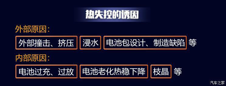 從已知的引發(fā)熱失控的原因來看,大體可以分為外部原因和內(nèi)部原因。外部原因如底盤的撞擊、擠壓、浸水等都是比較常見的;內(nèi)部原因如電池的過充、過放,電池老化、枝晶等現(xiàn)象,也被認(rèn)為是今年多起自燃事件的“元兇”。
