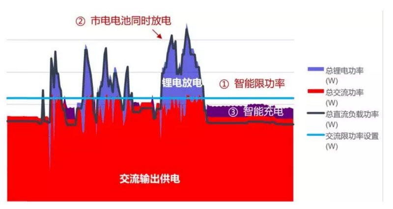以杭州市合豐村站點為例,它的平均負(fù)載為1.4kW,峰值負(fù)載為2.7kW,交流限功率為1.6kW,當(dāng)模擬加載5G業(yè)務(wù)時,負(fù)載峰值超過限功率點。5G Power提供的“智能削峰”創(chuàng)新技術(shù),基于軟件定義電源及智能儲能的智能能源調(diào)度算法,在負(fù)載峰值時,智能鋰電參與負(fù)載供電,實現(xiàn)站點削峰,降低市電按照典型功率配置容量。進(jìn)而達(dá)成“不改市電”,單站降低改造成本超過12500元,減少5G演進(jìn)的初始投資成本。