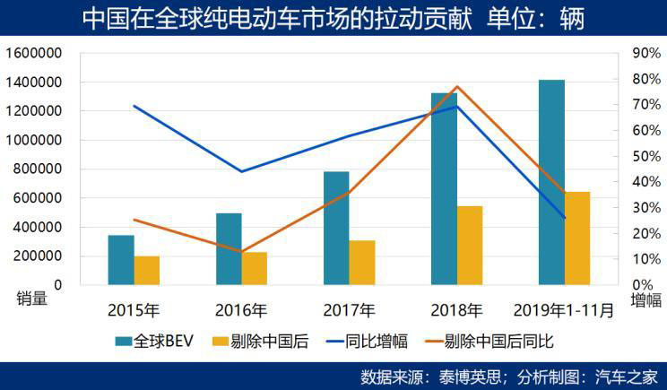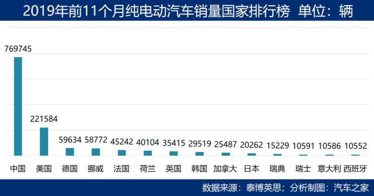 今年前十一個月,全球純電動汽車累計銷量的同比增幅是26%,剔除中國市場以后,同比增幅增加為36%。2019年是中國電動汽車補貼退出幅度最大的一年,本地市場因此在下半年出現(xiàn)了五連跌,沒有高額補貼護體的中國電動車,放慢了腳步。