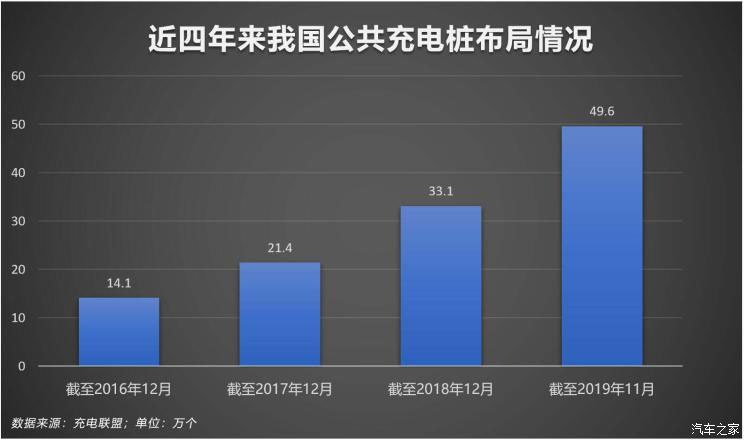 2017年開始,伴隨著新國標(biāo)升級,運(yùn)營商開始對現(xiàn)有充電樁進(jìn)行優(yōu)化,同時建樁也更加謹(jǐn)慎。通過系統(tǒng)評估后新建的充電樁,在使用效率上有了大幅提升。充電樁市場從2018年下半年開始回溫,根據(jù)充電聯(lián)盟數(shù)據(jù),截至2019年11月,我國公共充電樁數(shù)量達(dá)到49.6萬個,其中,2019年新建充電樁16.5萬個。