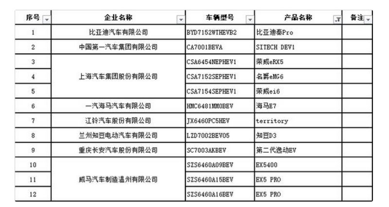 被移出《免征車輛購置稅的新能源汽車車型目錄》的新能源乘用車名單