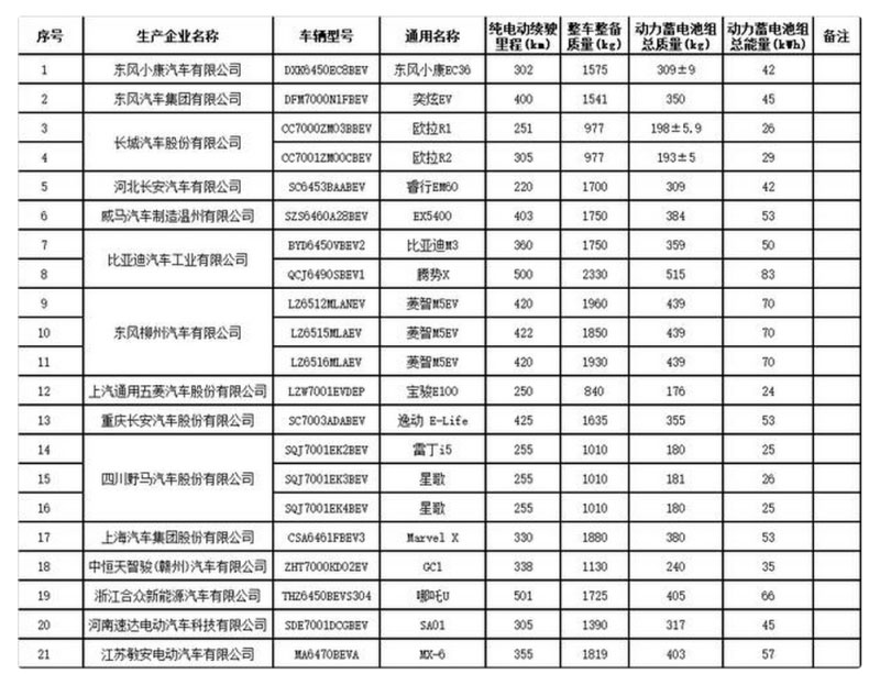 《免征車輛購置稅的新能源汽車車型目錄》(第二十八批)純電動乘用車名單