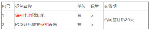 中國儲能網(wǎng)訊:平高集團有限公司2019年-2020年儲能項目第一批-成套設備類(天津項目)進行招標,擬采購儲能電池預制艙5套和PCS升壓成套儲能設備5套。詳情如下:
