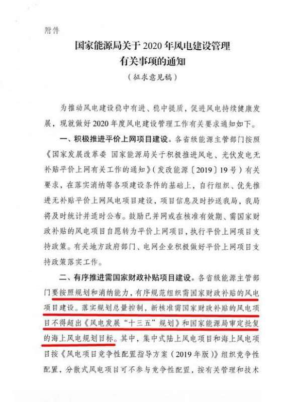 12月27日,國家能源局下發(fā)的《關(guān)于征求2020年風(fēng)電建設(shè)管理有關(guān)事項(xiàng)的通知(征求意見稿)的函》也明確指出,要落實(shí)規(guī)劃總量控制,各省級(jí)能源主管部門要按照規(guī)劃和消納能力,有序規(guī)范組織需國家財(cái)政補(bǔ)貼的風(fēng)電項(xiàng)目建設(shè)。