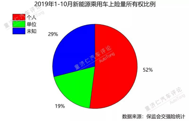 根據(jù)保監(jiān)會(huì)的交強(qiáng)險(xiǎn)數(shù)據(jù),今年1-10月,新能源汽車?yán)塾?jì)上險(xiǎn)量為71.3萬輛,其中37.1萬輛上險(xiǎn)量所有權(quán)為“個(gè)人”,占總量的52%。另外,除了19%的上險(xiǎn)量所有權(quán)為“單位”外,還有29%為未知。