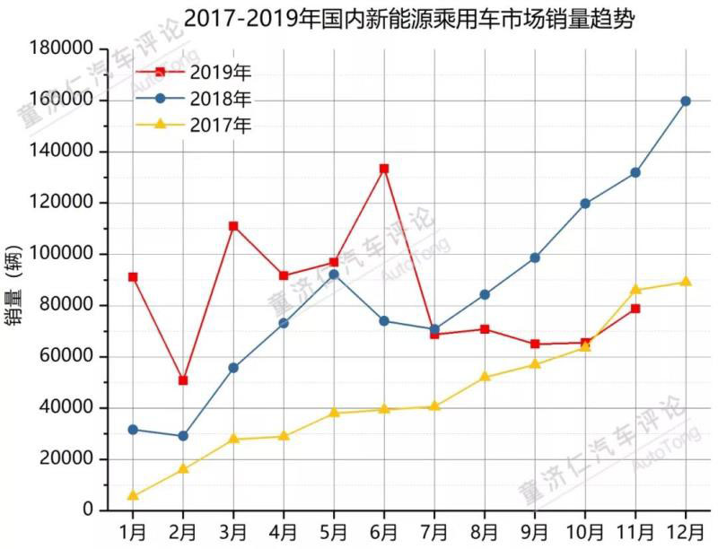 如果按照2017年和2018年的慣例,新能源汽車市場會(huì)在下半年發(fā)力沖刺。但是2019年中補(bǔ)貼政策的大幅退坡,讓新能源汽車市場在6月達(dá)到頂峰后陡然下滑,今年7-11月,國內(nèi)新能源乘用車市場同比下滑31.88%。